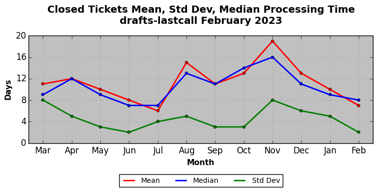The statistics below are offered to measure IANA's fulfillment of the goals established in the ICANN / IANA - IETF MoU Supplemental Agreement. Further details on these goals and statistics can be found by reviewing the agreement.