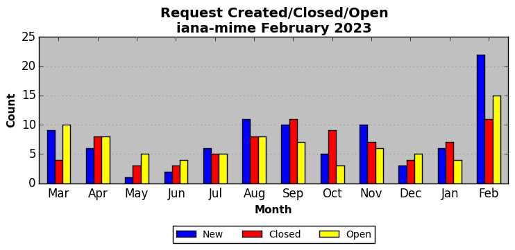 February 2023Due to the nature of resource request reviews, ICANN/IANA and the IETF community are jointly responsible for cooperatively managing the resource request process. ICANN/IANA has control over the functions it performs directly, e.g., receiving requests, making sure they are syntactically and semantically sensible, forwarding the requests to Designated Experts where appropriate, creating and modifying the registries, etc. The IETF community has direct or indirect control over functions performed by third parties, including IESG Designated Experts, the IESG, the IAB, the RFC Editor, and the requester. As such, the processing of requests has a “gross processing time” calendar days goal established for each function and a “net processing time” calendar days goal to reflect time expended directly by ICANN/IANA.