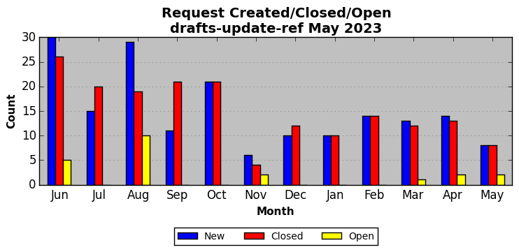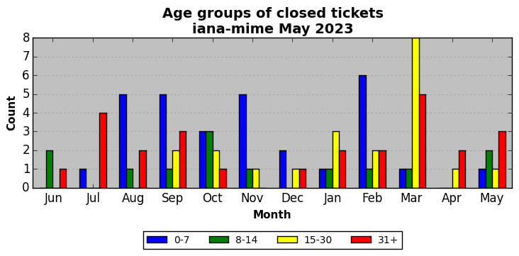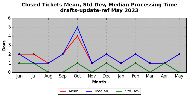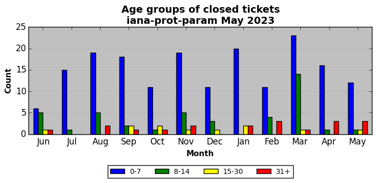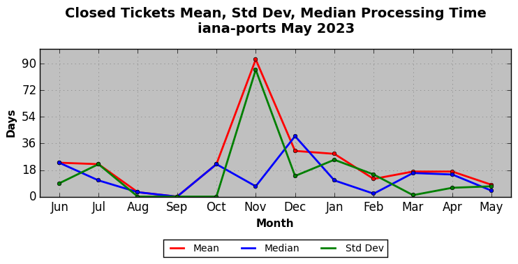 The statistics below are offered to measure IANA's fulfillment of the goals established in the ICANN / IANA - IETF MoU Supplemental Agreement. Further details on these goals and statistics can be found by reviewing the agreement.