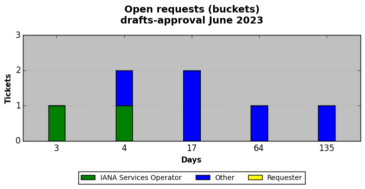 June 2023Due to the nature of resource request reviews, ICANN/IANA and the IETF community are jointly responsible for cooperatively managing the resource request process. ICANN/IANA has control over the functions it performs directly, e.g., receiving requests, making sure they are syntactically and semantically sensible, forwarding the requests to Designated Experts where appropriate, creating and modifying the registries, etc. The IETF community has direct or indirect control over functions performed by third parties, including IESG Designated Experts, the IESG, the IAB, the RFC Editor, and the requester. As such, the processing of requests has a “gross processing time” calendar days goal established for each function and a “net processing time” calendar days goal to reflect time expended directly by ICANN/IANA.