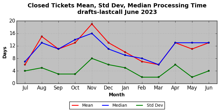 The statistics below are offered to measure IANA's fulfillment of the goals established in the ICANN / IANA - IETF MoU Supplemental Agreement. Further details on these goals and statistics can be found by reviewing the agreement.