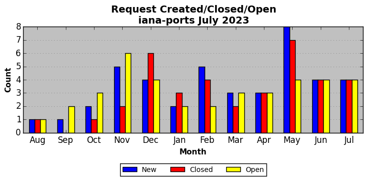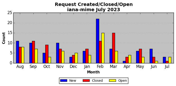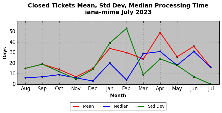 The statistics below are offered to measure IANA's fulfillment of the goals established in the ICANN / IANA - IETF MoU Supplemental Agreement. Further details on these goals and statistics can be found by reviewing the agreement.