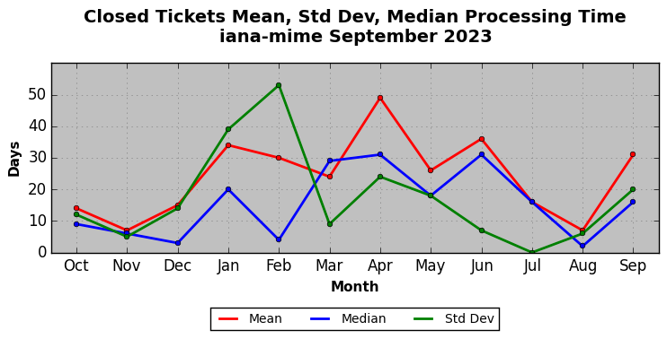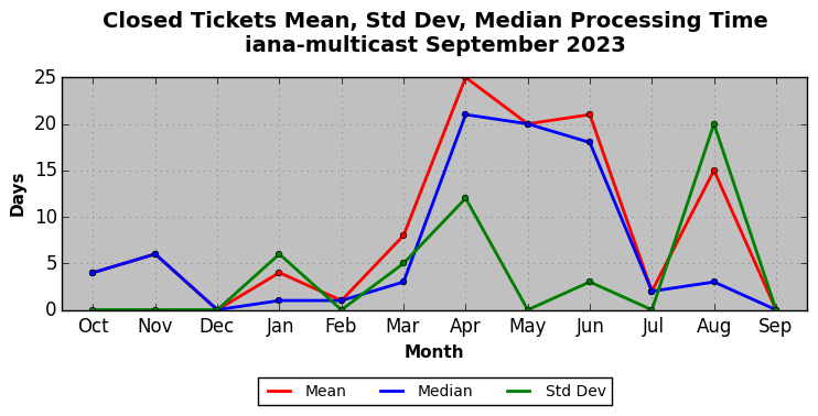The statistics below are offered to measure IANA's fulfillment of the goals established in the ICANN / IANA - IETF MoU Supplemental Agreement. Further details on these goals and statistics can be found by reviewing the agreement.