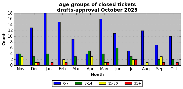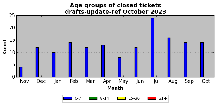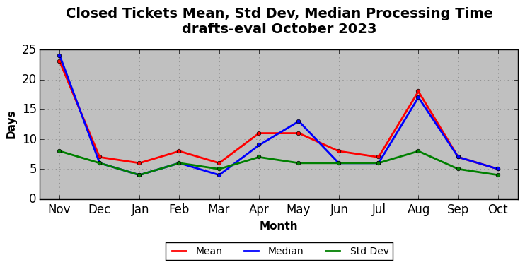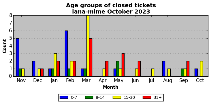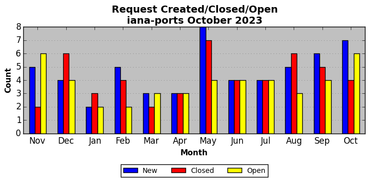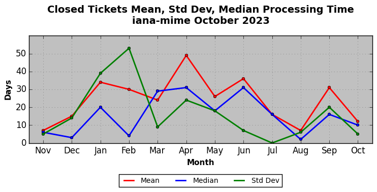 The statistics below are offered to measure IANA's fulfillment of the goals established in the ICANN / IANA - IETF MoU Supplemental Agreement. Further details on these goals and statistics can be found by reviewing the agreement.