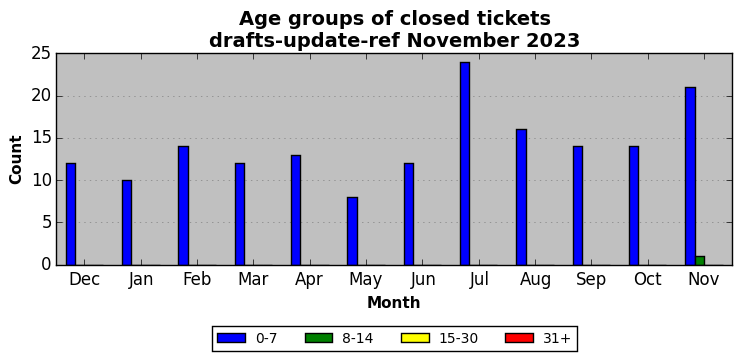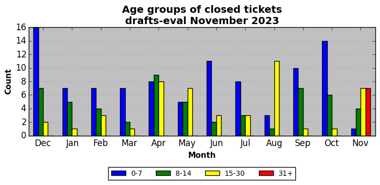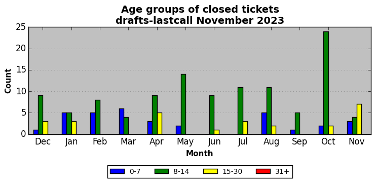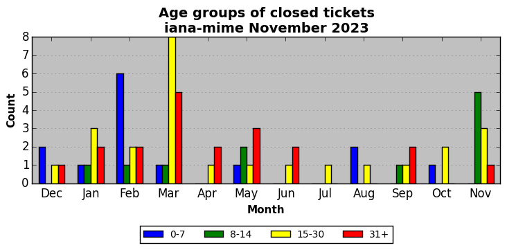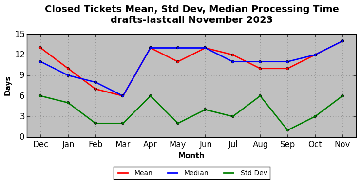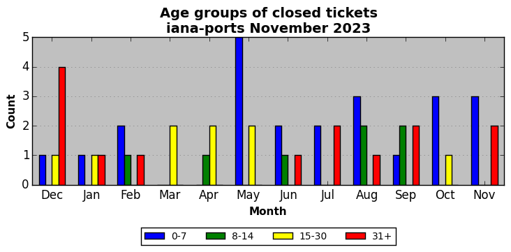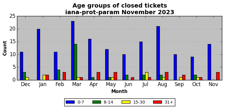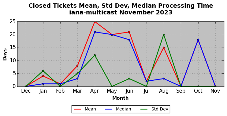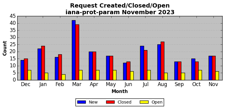 The statistics below are offered to measure IANA's fulfillment of the goals established in the ICANN / IANA - IETF MoU Supplemental Agreement. Further details on these goals and statistics can be found by reviewing the agreement.