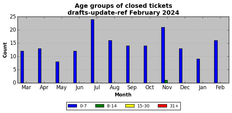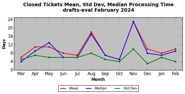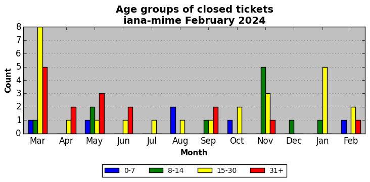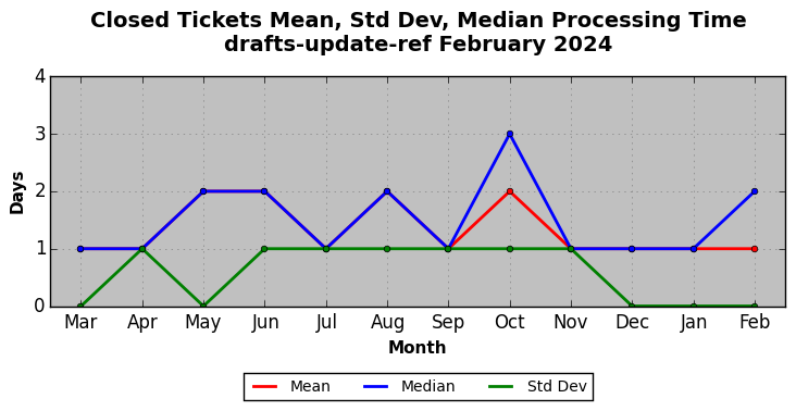 The statistics below are offered to measure IANA's fulfillment of the goals established in the ICANN / IANA - IETF MoU Supplemental Agreement. Further details on these goals and statistics can be found by reviewing the agreement.
