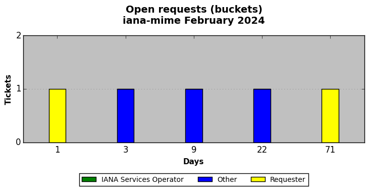 February 2024Due to the nature of resource request reviews, ICANN/IANA and the IETF community are jointly responsible for cooperatively managing the resource request process. ICANN/IANA has control over the functions it performs directly, e.g., receiving requests, making sure they are syntactically and semantically sensible, forwarding the requests to Designated Experts where appropriate, creating and modifying the registries, etc. The IETF community has direct or indirect control over functions performed by third parties, including IESG Designated Experts, the IESG, the IAB, the RFC Editor, and the requester. As such, the processing of requests has a “gross processing time” calendar days goal established for each function and a “net processing time” calendar days goal to reflect time expended directly by ICANN/IANA.