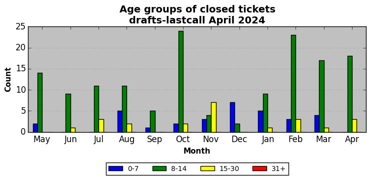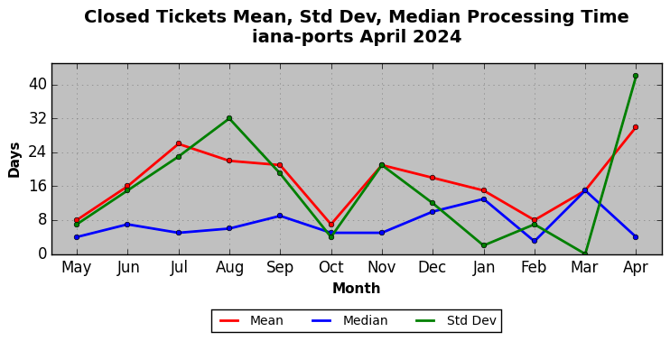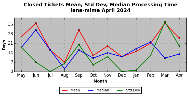 The statistics below are offered to measure IANA's fulfillment of the goals established in the ICANN / IANA - IETF MoU Supplemental Agreement. Further details on these goals and statistics can be found by reviewing the agreement.