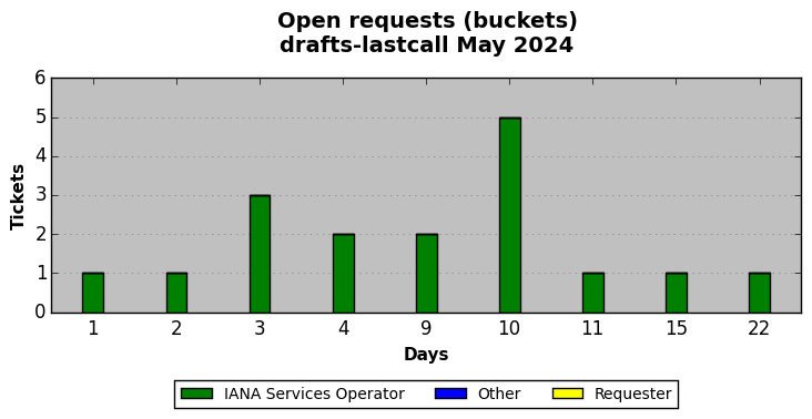 May 2024Due to the nature of resource request reviews, ICANN/IANA and the IETF community are jointly responsible for cooperatively managing the resource request process. ICANN/IANA has control over the functions it performs directly, e.g., receiving requests, making sure they are syntactically and semantically sensible, forwarding the requests to Designated Experts where appropriate, creating and modifying the registries, etc. The IETF community has direct or indirect control over functions performed by third parties, including IESG Designated Experts, the IESG, the IAB, the RFC Editor, and the requester. As such, the processing of requests has a “gross processing time” calendar days goal established for each function and a “net processing time” calendar days goal to reflect time expended directly by ICANN/IANA.