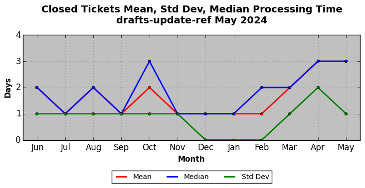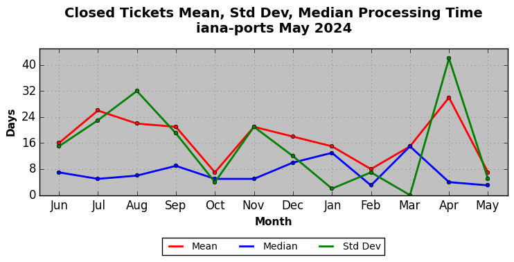 The statistics below are offered to measure IANA's fulfillment of the goals established in the ICANN / IANA - IETF MoU Supplemental Agreement. Further details on these goals and statistics can be found by reviewing the agreement.
