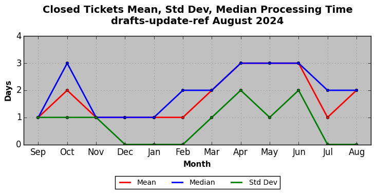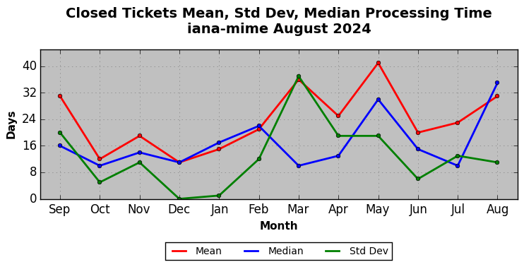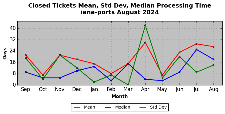 The statistics below are offered to measure IANA's fulfillment of the goals established in the ICANN / IANA - IETF MoU Supplemental Agreement. Further details on these goals and statistics can be found by reviewing the agreement.
