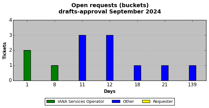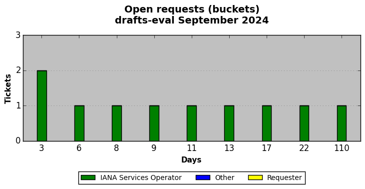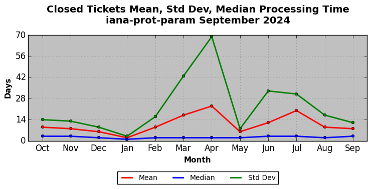 September 2024Due to the nature of resource request reviews, ICANN/IANA and the IETF community are jointly responsible for cooperatively managing the resource request process. ICANN/IANA has control over the functions it performs directly, e.g., receiving requests, making sure they are syntactically and semantically sensible, forwarding the requests to Designated Experts where appropriate, creating and modifying the registries, etc. The IETF community has direct or indirect control over functions performed by third parties, including IESG Designated Experts, the IESG, the IAB, the RFC Editor, and the requester. As such, the processing of requests has a “gross processing time” calendar days goal established for each function and a “net processing time” calendar days goal to reflect time expended directly by ICANN/IANA.