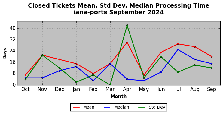 The statistics below are offered to measure IANA's fulfillment of the goals established in the ICANN / IANA - IETF MoU Supplemental Agreement. Further details on these goals and statistics can be found by reviewing the agreement.