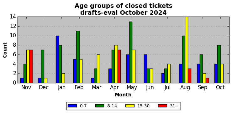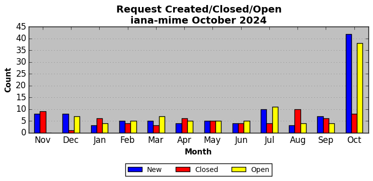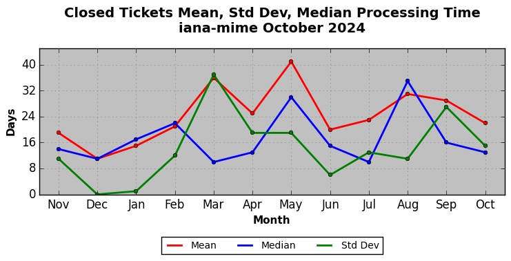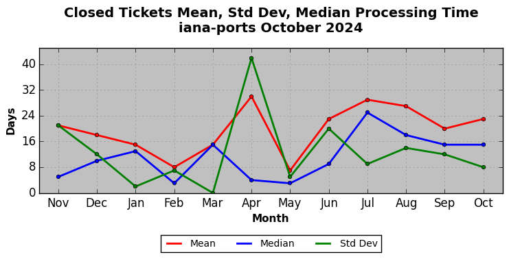 The statistics below are offered to measure IANA's fulfillment of the goals established in the ICANN / IANA - IETF MoU Supplemental Agreement. Further details on these goals and statistics can be found by reviewing the agreement.