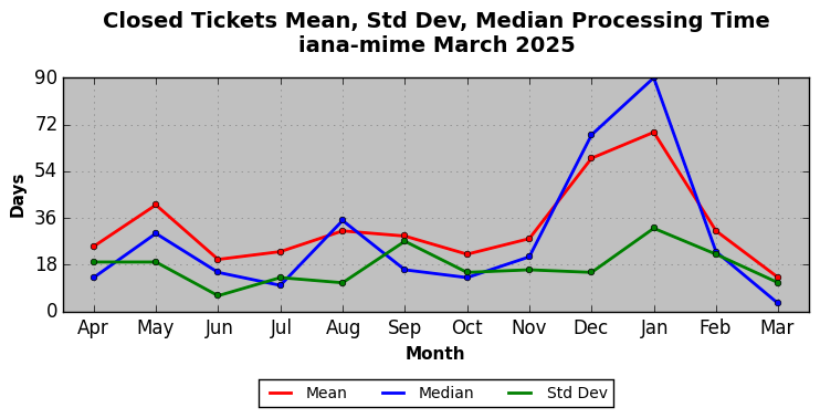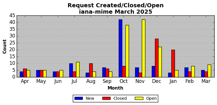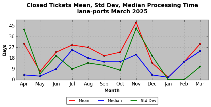 The statistics below are offered to measure IANA's fulfillment of the goals established in the ICANN / IANA - IETF MoU Supplemental Agreement. Further details on these goals and statistics can be found by reviewing the agreement.