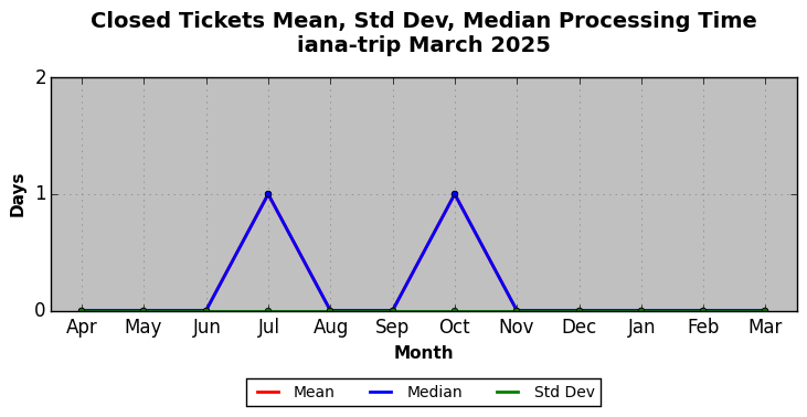March 2025Due to the nature of resource request reviews, ICANN/IANA and the IETF community are jointly responsible for cooperatively managing the resource request process. ICANN/IANA has control over the functions it performs directly, e.g., receiving requests, making sure they are syntactically and semantically sensible, forwarding the requests to Designated Experts where appropriate, creating and modifying the registries, etc. The IETF community has direct or indirect control over functions performed by third parties, including IESG Designated Experts, the IESG, the IAB, the RFC Editor, and the requester. As such, the processing of requests has a “gross processing time” calendar days goal established for each function and a “net processing time” calendar days goal to reflect time expended directly by ICANN/IANA.
