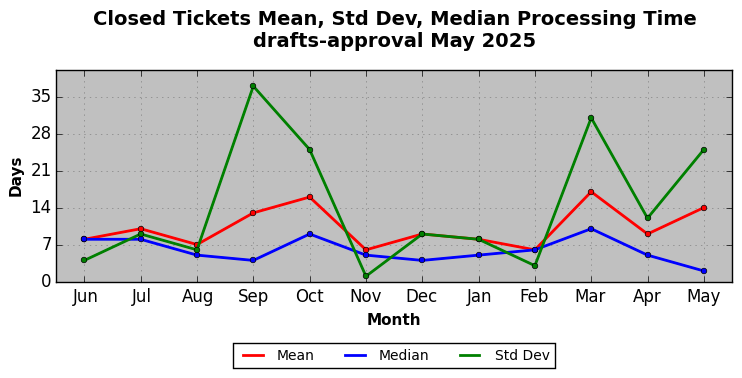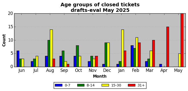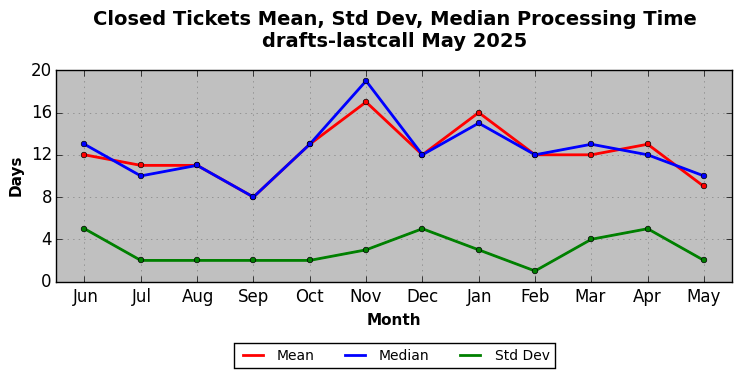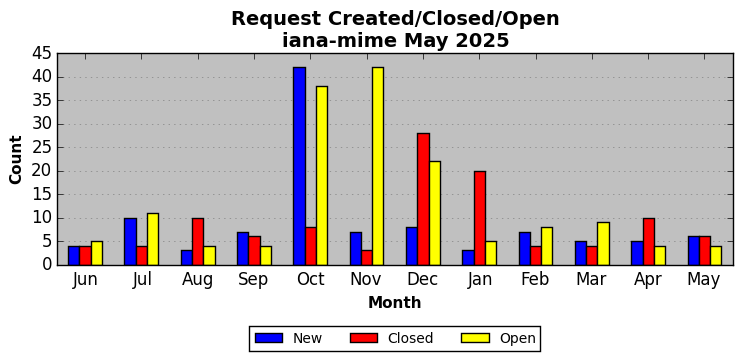 The statistics below are offered to measure IANA's fulfillment of the goals established in the ICANN / IANA - IETF MoU Supplemental Agreement. Further details on these goals and statistics can be found by reviewing the agreement.