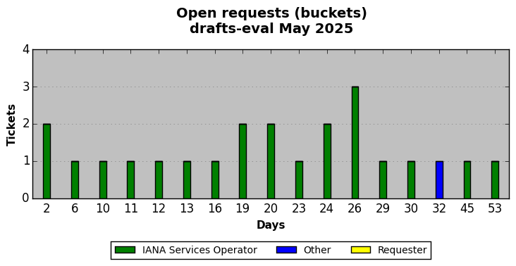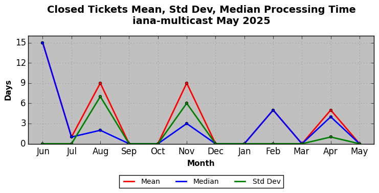 May 2025Due to the nature of resource request reviews, ICANN/IANA and the IETF community are jointly responsible for cooperatively managing the resource request process. ICANN/IANA has control over the functions it performs directly, e.g., receiving requests, making sure they are syntactically and semantically sensible, forwarding the requests to Designated Experts where appropriate, creating and modifying the registries, etc. The IETF community has direct or indirect control over functions performed by third parties, including IESG Designated Experts, the IESG, the IAB, the RFC Editor, and the requester. As such, the processing of requests has a “gross processing time” calendar days goal established for each function and a “net processing time” calendar days goal to reflect time expended directly by ICANN/IANA.