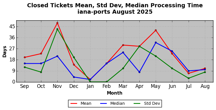 The statistics below are offered to measure IANA's fulfillment of the goals established in the ICANN / IANA - IETF MoU Supplemental Agreement. Further details on these goals and statistics can be found by reviewing the agreement.