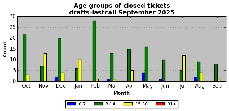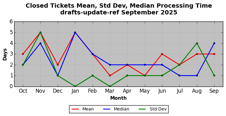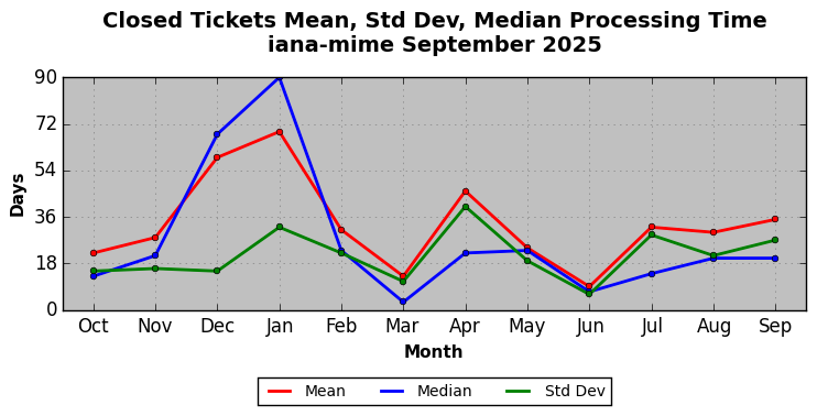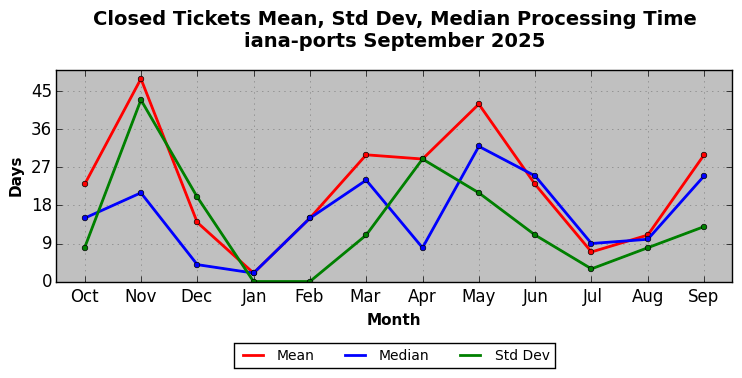 The statistics below are offered to measure IANA's fulfillment of the goals established in the ICANN / IANA - IETF MoU Supplemental Agreement. Further details on these goals and statistics can be found by reviewing the agreement.